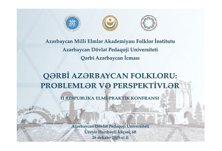 26 dekabr 2025-ci il tarixində Bakı şəhərində Azərbaycan Milli Elmlər Akademiyasının Folklor İnstitutu, Azərbaycan Dövlət Pedaqoji Universiteti və Qərbi Azərbaycan İcmasının birgə təşkilatçılığı ilə “Qərbi Azərbaycan folkloru: problemlər və perspektivlər” mövzusunda II Respublika elmi-praktik konfransı keçiriləcək.