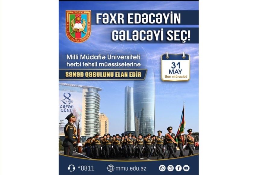 Vətəndaşları maraqlandıran suallarla bağlı Milli Müdafiə Universitetinin çağrı mərkəzi - *0811 (iş günlərində saat 09:00- dan 17:30-dək) və admission@mmu.edu.az elektron poçt ünvanı fəaliyyət göstərir. (Trend)