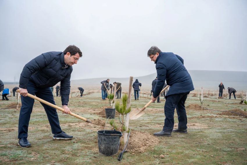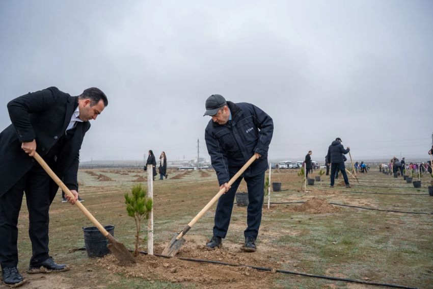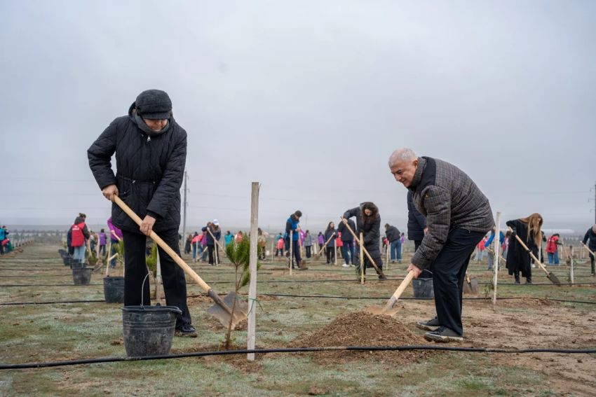 Aksiya zamanı Abşeron yarımadasının torpaq-iqlim şəraitinə uyğun Eldar şamı və zeytun ağacları əkilib. (Report)