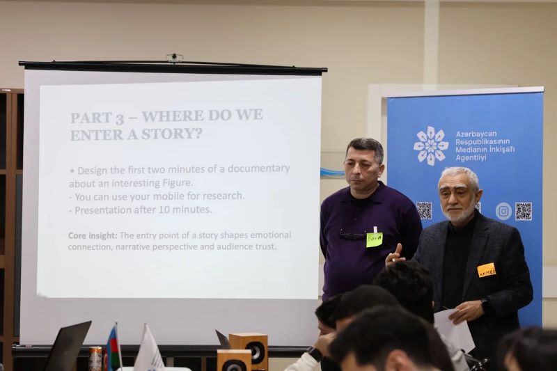 Sessiyalarda "Müasir multimedia məzmun yaradıcılığına giriş: təcrübə və fikir mübadiləsi", "Real iş mühitində qərarvermə: peşə terminologiyası, montaj və vizual elementlərin işlənilməsi", "Hekayəyə giriş: auditoriyanı cəlb edən giriş strategiyaları, emosiya və etibarlılıq", "Avadanlıqlardan istifadə: kadrlama və perspektivin gücü", "Vizual materiallarda emosional təsir və etik yanaşma", eləcə də "Vizual hekayəçilikdə refleksiya və əsas nəticələr" mövzuları müzakirə olunub.