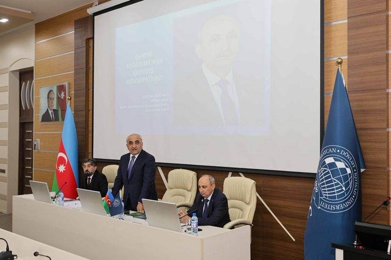 Tədbiri giriş sözü ilə açan UNEC rektoru, professor Ədalət Muradov çıxışında qeyd edib ki, “Qərbi Azərbaycana qayıdış konsepsiyası” xalqımızın yaddaşında dərin iz buraxmış tarixi əsaslara söykənir. Onun sözlərinə görə, bu yanaşma yalnız keçmişə nəzər salmaqla kifayətlənmir, eyni zamanda gələcəyə istiqamətlənmiş strateji baxışın formalaşdırılmasını nəzərdə tutur. Rektor vurğulayıb ki, burada sadəcə bir ideyadan deyil, tarixi ədalətin bərpasına yönəlmiş konseptual yanaşmadan söhbət gedir.