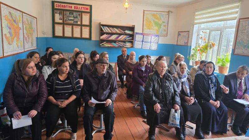 RİH başçısı Azər Qocayev səyyar görüşdə sakinlərə öncə Azərbaycan Respublikasının Prezidenti cənab İlham Əliyev tərəfindən aparılan uğurlu daxili və xarici siyasətdən, xalqımızın tarixinə “Zəfər salnaməsi” kimi yazılan 44 günlük müharibədə qazandığımız Şanlı Qələbədən, həmçinin düşmənə ağ bayraq qaldırtdıraraq qondarama dövlət qurumlarının ləğvinə, ərazi bütövlüyümüzün tam bərpasına səbəb olan lokal antiterror əməliyyatından, uğurla icra edən “Böyük qayıdış” dövlət proqramından, eləcədə əhalinin sosial müdafiəsinə və rifah halının yüksəldilməsinə yönəlmiş dövlət proqramlarından söz açıb.