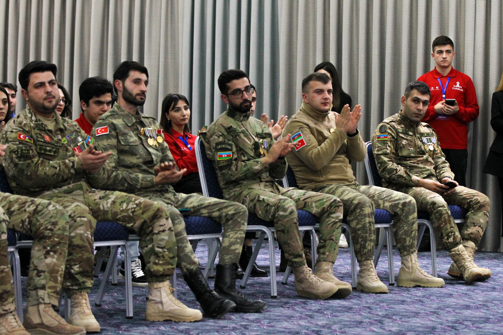 Daha sonra təşkilatının idarə heyətinin üzvü, Aprel döyüşləri qazisi Əhliyət Mehdiyevin moderatorluğu ilə davam edən görüşdə Vətən müharibəsi qaziləri keçdikləri döyüş yollarından, müharibə dövründə ordumuzun döyüş əhval-ruhiyyəsindən, hərbi-psixoloji hazırılığından, işğaldan azad olunmuş ərazilərə ilk ayaq basdıqlarında yaşadıqları hisslərdən, xalq və ordu birliyindən danışıb, onları maraqlandıran sualları cavablandırıblar. Tədbir mədəniyyətimizin beşiyi olan Qarabağın istedadlı gənclərinin təqdimatında biri - birindən maraqlı musiqi və şeir ifaları ilə yekunlaşıb.