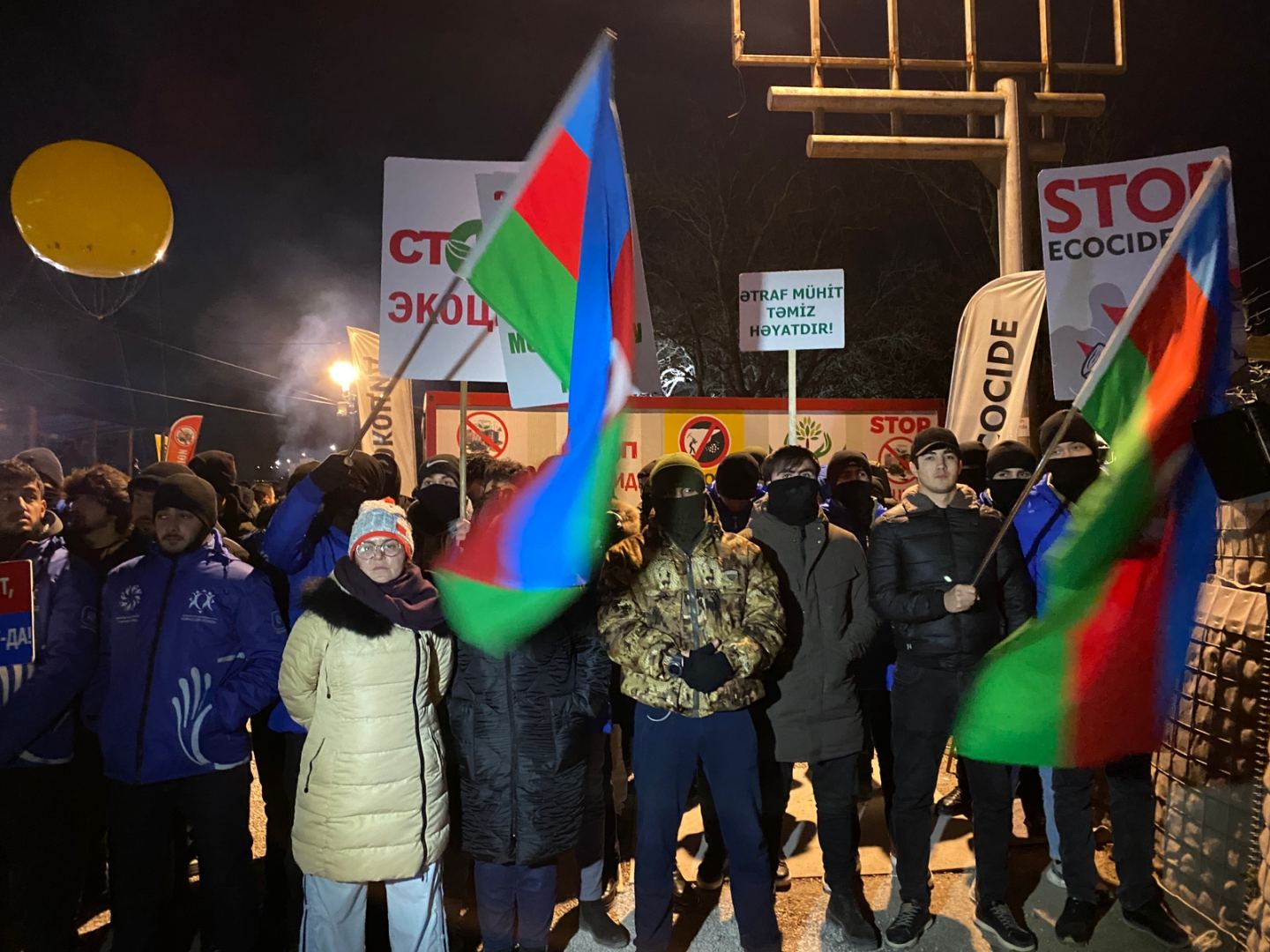 Qeyri-hökumət və könüllü təşkilatlarından ibarət aksiya iştirakçıları Azərbaycan ərazilərində faydalı qazıntı yataqlarının qanunsuz istismarından irəli gələn ekoloji fəlakət və digər fəsadlarla bağlı ilkin monitorinqin aparılmalı olması barədə şüarlar səsləndirirlər. Aksiya iştirakçılarının fəallığı onların tələbləri yerinə yetirilməyənədək ərazini tərk etməyəcəklərini göstərir.