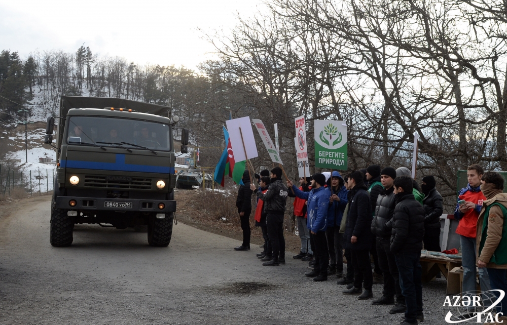 Xatırladaq ki, ötən il dekabrın 3-də və 7-də Rusiya sülhməramlı kontingentinin komandanlığı ilə aparılmış müzakirələrin nəticəsi olaraq Azərbaycanın İqtisadiyyat, Ekologiya və Təbii Sərvətlər nazirlikləri, İqtisadiyyat Nazirliyi yanında Əmlak Məsələləri Dövlət Xidməti və “AzerGold” Qapalı Səhmdar Cəmiyyətinin mütəxəssislərindən ibarət heyət Rusiya sülhməramlı kontingentinin müvəqqəti yerləşdirildiyi Azərbaycan ərazilərində faydalı qazıntı yataqlarının qanunsuz istismarı, bundan irəli gələn ekoloji və digər fəsadlarla bağlı ilkin monitorinq aparmalı idi. Lakin sülhməramlıların hərəkətsizliyi ucbatından monitorinq baş tutmayıb. Buna etiraz olaraq, azərbaycanlı ekofəallar Şuşa ərazisindən keçən Laçın-Xankəndi yolunda dekabrın 12-dən dinc aksiyaya başlayıblar. (AZƏRTAC)