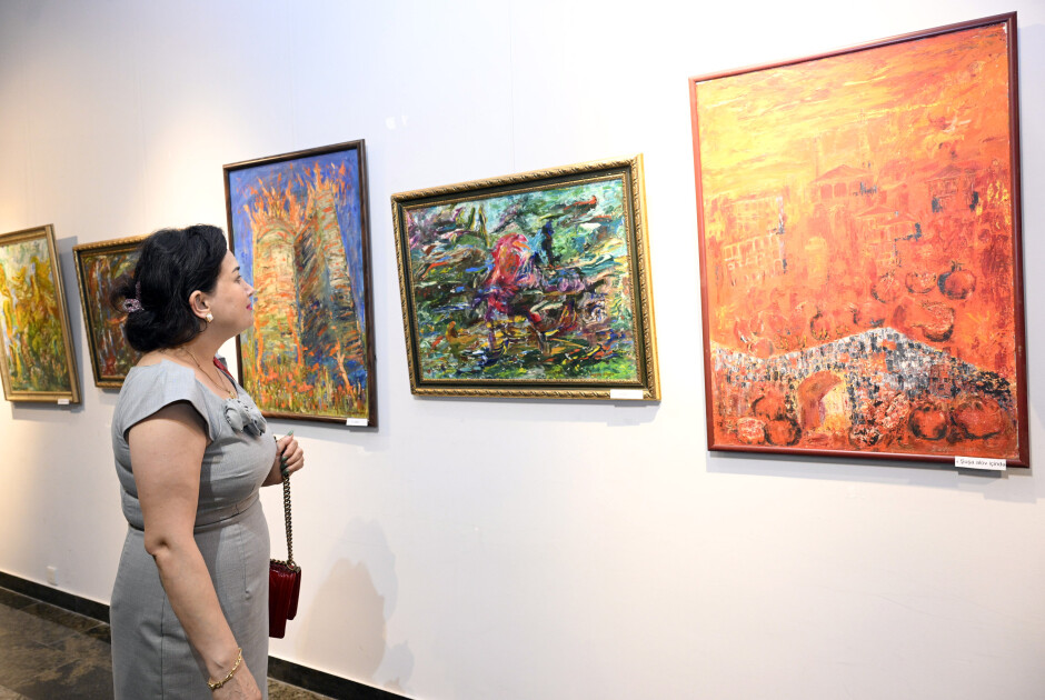 Sərgidə 80-dən çox əsər yer alıb. Ekspozisiyada fırça ustasının Şuşaya, Xocalı faciəsinə həsr olunan əsərləri, abstrakt və peyzaj janrında çəkdiyi rəsmləri nümayiş olunur. Sərgidə həmçinin Prezident İlham Əliyevin rəhbərliyi ilə aparılan uğurlu siyasətin nəticəsində Vətən müharibəsində əldə olunmuş Qələbəyə həsr olunmuş “Ata vəsiyyəti”, “Şuşa qalası”, “Cıdır düzü”, “Xarıbülbül” əsərlərini də görmək olar.