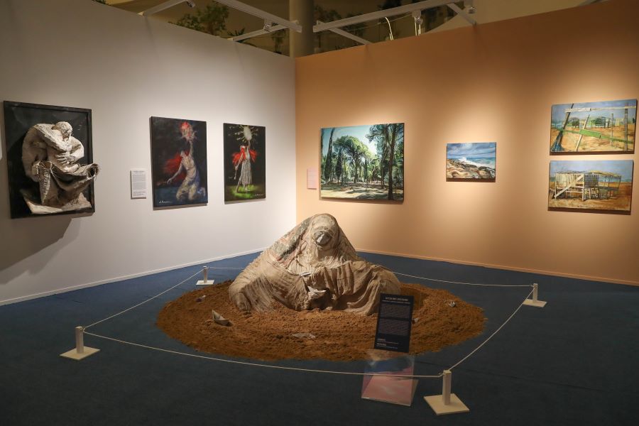 Ekspozisiyada rəqəmsal instalyasiya, rəsm, qrafika və heykəltaraşlıq nümunələri daxil olmaqla, ümumilikdə 127 əsər təqdim olunur.