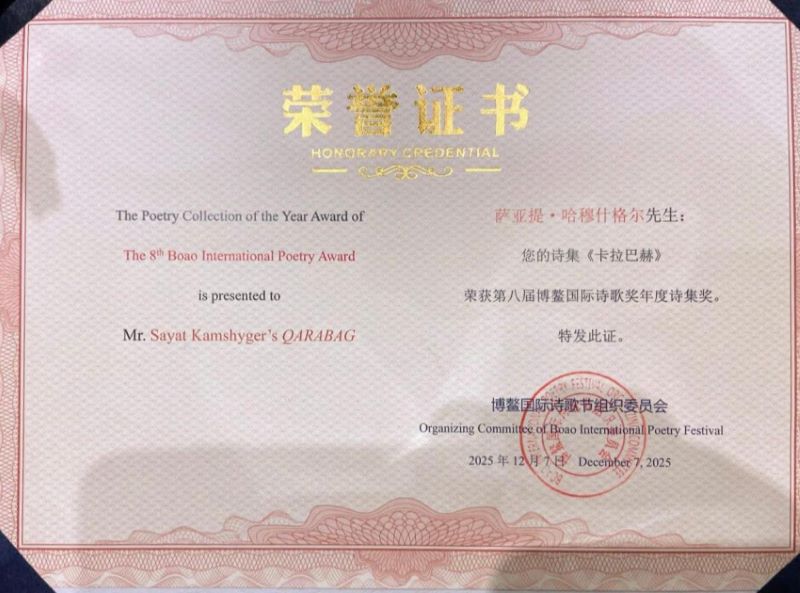 “Qarabağ” poeması bu ilin martında Azərbaycanda çap olunub və Qazaxıstanda geniş ədəbi ictimaiyyət tərəfindən rəğbətlə qarşılanıb.