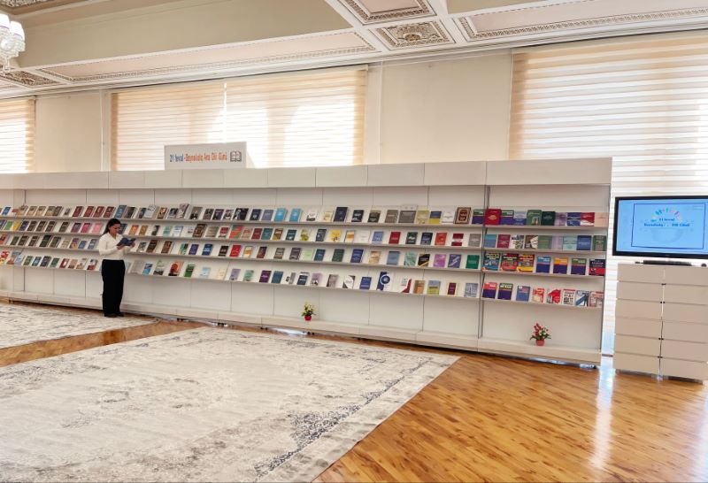 Ənənəvi sərgidə Azərbaycan dövlət dil siyasətinin formalaşması tarixi, ana dilinin həm ümumxalq dili, həm də dövlət dili kimi inkişafında Ulu Öndər Heydər Əliyevin misilsiz xidmətləri, dil haqqında aforizmlər, dilin tədqiqi, tarixi, tədrisi məsələləri, dünya dilləri haqqında tədqiqatlar, xarici dillərdə lüğətlər nümayiş olunub.