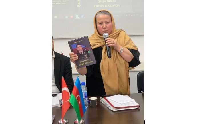 Tədbirdə çıxış edən “Mirvarid Dilbazi Poeziya Məclisi” İctimai Birliyinin sədri Güllü Eldar Tomarlı təqdim olunan kitab haqqında məlumat verib. O bildirib ki, “Şuşa fatehi – Yunis Kazımov” kitabının müəllifi filologiya üzrə fəlsəfə doktoru, şair və publisist Fəridə Ləman, redaktoru professor Tamella Abbasxanlı, məsləhətçisi isə jurnalist-publisist Qalib Rəhimlidir.
