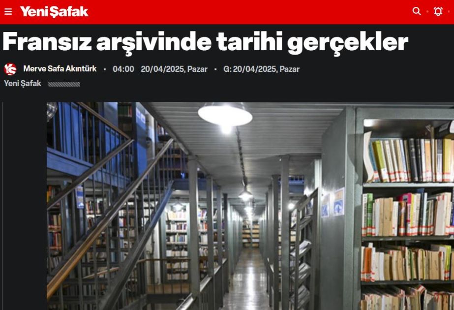 Bu barədə Türkiyənin “Yeni Şafak” qəzeti bazar günü dərc etdiyi “Fransa arxivlərində tarixi həqiqətlər” sərlövhəli məqaləsində məlumat verib.