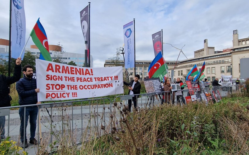 Azərbaycan icması Ermənistanın Niderlanddakı səfirliyi qarşısında piket keçirib