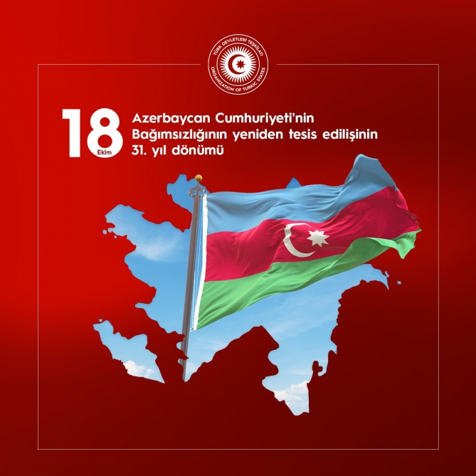 Türk Dövlətləri Təşkilatı Azərbaycanın dövlət müstəqilliyinin bərpasının 31-ci ildönümü ilə bağlı rəsmi tvitter səhifəsində paylaşım edib.